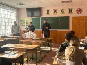 За ініціативою інспектора ССОБ Надвірнянського РВП ГУНП в Івано-Франківській області Аліни Грицак, 5 грудня до нашого ліцею завітали офіцери-рятувальники Надвірнянського РУЦЗ та ПД. Фахівці провели змістовне та надзвичайно актуальне заняття для учнів 10-Б та 11-А класів, присвячене дотриманню правил мінної безпеки.